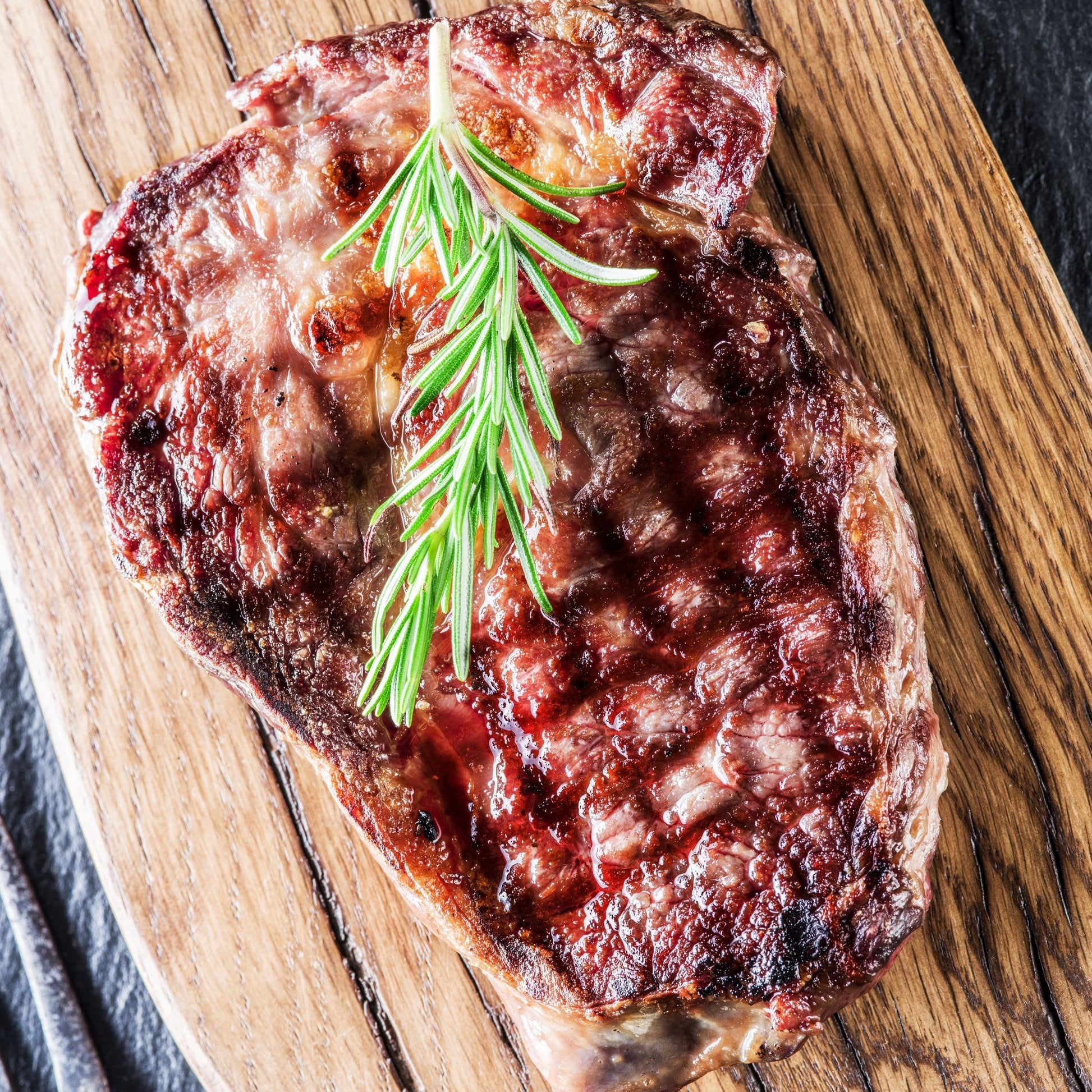 Our Rib Eyes are carved from the primal section called the beef rib. It falls between the chuck (shoulder) and the loin, and spans from ribs six through twelve. This section of the animal naturally collects more intramuscular fat, creating fantastic marbling unique to the ribeye. The marbling will melt into the steak as it cooks, creating a juicy and tender steak. The bold, rich flavour and immense juiciness is why the ribeye is a favourite among steak lovers.