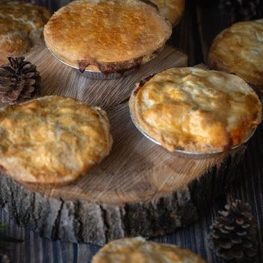 AAA Canadian Prime Strip loin Sliced with Sautéed Onions and Button Mushrooms in our Classic Au Jus. Our promise... one steak is used in every single pie!